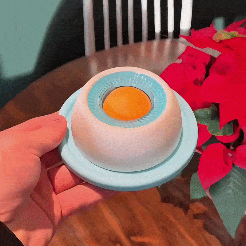 Stabilna podstawa utrzymuje produkt na miejscu, a zamknięta konstrukcja uniemożliwia jego rozgryzienie.